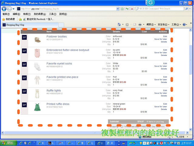 (2)加到購物車(Shopping Bag) 後