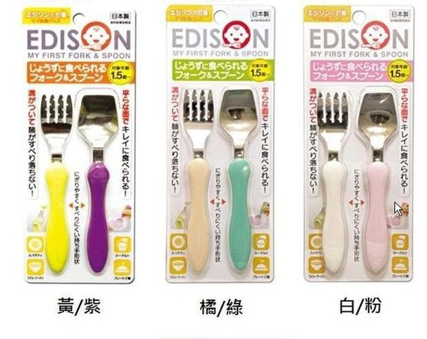 EDISON 幼兒餐具-湯匙叉子組(此款附盒子款只有黃紫)