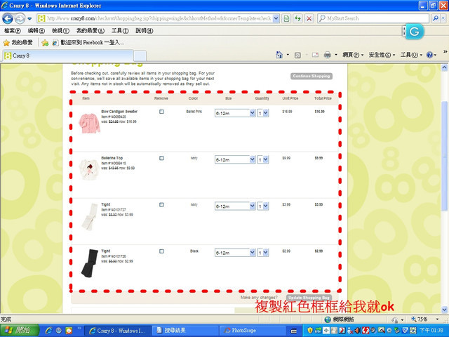 (1)點選好你要的衣服(顏色.尺寸.數量 )